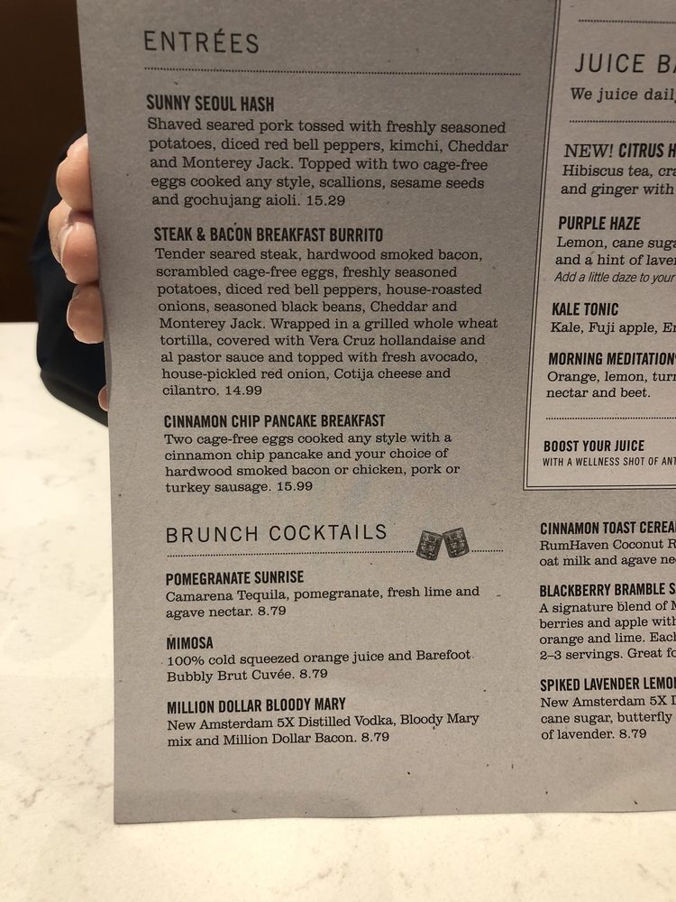 Start your day with the Avocado Toast topped with cage-free eggs, or indulge in the scrumptious Million Dollar Bacon, glazed to perfection. For those seeking a healthier option, the AM Superfoods Bowl featuring coconut milk chia pudding is a refreshing choice.